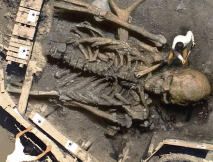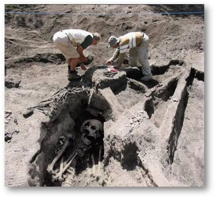โครงกระดูกทั้ง 50 โครง มีความสูงไม่ต่ำกว่า 7 ฟุต โครงที่สูงที่สุดวัดจากหัวกะโหลกถึงปลายเท้าสูงถึง 9 ฟุต 8 นิ้ว ทั้งหมดตายเมื่ออายุ 35-40 ปีโดยประมาณ พวกเขายังมีฟันที่อยู่ในสภาพสมบูรณ์ดีเกือบทั้งหมด เราตั้งเป็นทฤษฎีขึ้นอธิบายไว้อย่างหยาบๆ ว่า พวกนี้อาจเป็นพวกนักรบป่าโบราณที่ถูกทหารโรมันเกณฑ์มาเป็นทาสทหาร และคงถูกฆ่าตายด้วยเหตุผลบางประการ แต่ที่น่าแปลกคือไม่พบเครื่องแต่งกายหรืออาวุธยุทโธปกรณ์ใดๆ ในบริเวณหลุมฝังศพนั้นเลย
