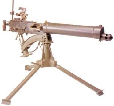 นี่เป็นปืนกลหนัก Vickers หล่อเย็นลำกล้องด้วยน้ำที่อยู่ในท่อรอบๆลำกล้องนั่นแหละครับ ยิงไปมากๆน้ำระเหยออกหมด บางที่ต้องฉี่ใส่แทนน้ำก็มีไ ม่งั้นลำกล้องขยายตัวมากจนกระสุนหล่นอยู่แค่ 5-6 เมตรแถวปากลำกล้อง 555+สุดยอดมั้ยละ