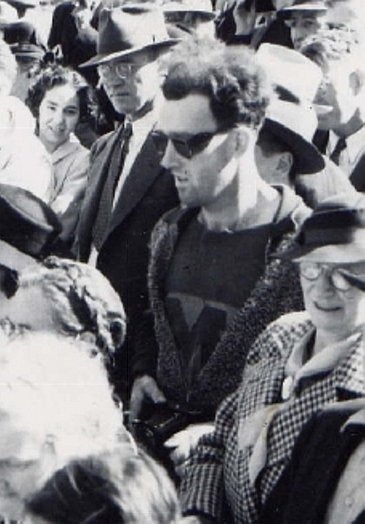ท่าม กลางฝูงชนในภาพ มีชายคนหนึ่งแต่งกายผิดแผกแตกต่างไปจากผู้คนในยุคสมัยนั้น โดยเขามีทรงผมล้ำสมัย สวมแว่นตาดำ ใส่เสื้อยืดสวมเสื้อแจ๊กเกตทับ อันเป็นแฟชั่นในยุคปัจจุบัน ไม่ใช่เมื่อ 70 ปีก่อน แต่ที่สำคัญกว่าการแต่งกายคือชายคนนี้ถือกล้องถ่ายรูปพกพาที่ยังไม่ผลิตออก จำหน่ายในสมัยนั้น