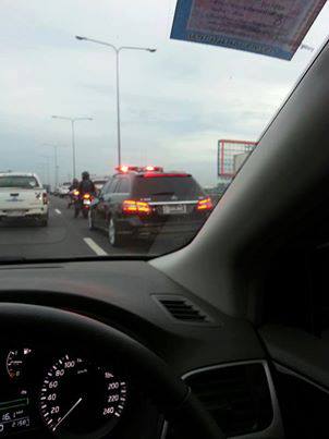 แต่เมื่อเราหันไปมองกระจกมองข้างเราพบ ขบวนเสด็จของพระองค์ค่อยๆเคลื่อนมา โดยมีขบวนรถรักษาพระองค์นำหน้า รวมๆแล้วประมาณทั้งหมด 20 คันเศษ ขบวนของพระองค์ไม่ได้มีการเปิด silen ขอทาง หรือ มีทหารมาค่อยกักรถของประชาชนแต่อย่างใด