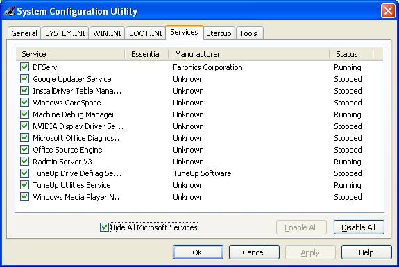 ต้องไม่ลืมที่เลือกที่ช่องดังภาพ เนื่องจากจะซ่อนในส่วนที่จำเป็น และป้องกันการหลงลืมเปิดและปิด Service ที่ไม่ถูกต้อง