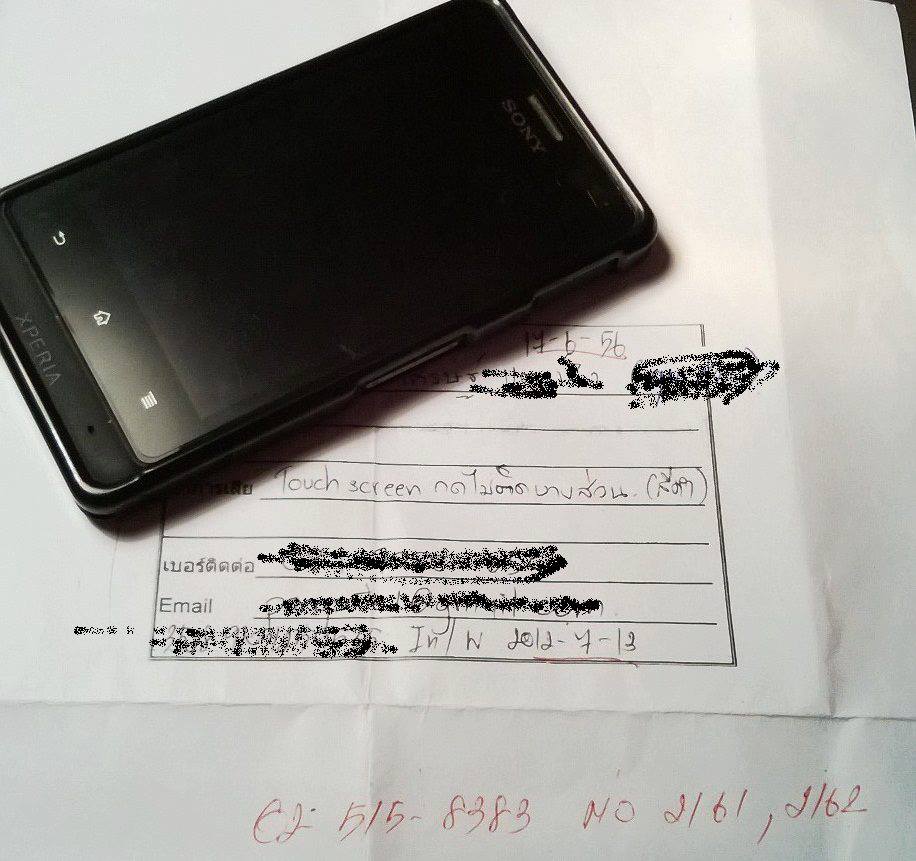 ปรากฏว่าเมื่อเดือนมิถุนายน (ใช้ได้ 11 เดือน) ที่ผ่านมา touchscreen เกิดปัญหาไม่ตอบสนองบางบริเวณ (ผมไม่เคยทำตกแรงๆ ใส่เคสตลอด โดนน้ำบ้างนิดหน่อย ก็รุ่นนี้โฆษณาว่ากันน้ำได้ลึก 1 เมตรนาน 30