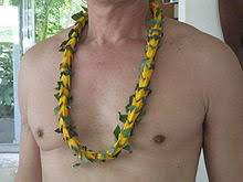 คุณตากำลังประดิษฐ์สร้อยคล้องคอจากหน่วยของผลฮาลา ที่ชาวฮาวายใช้ต้อนรับนักท่องเที่ยว และประกอบพิธีกรรม งานรื่นเริงต่างๆ