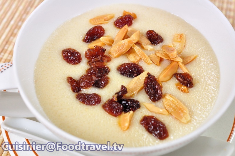 5. ตักเสริฟ โรยหน้าด้วยลูกเกด อัลมอนด์