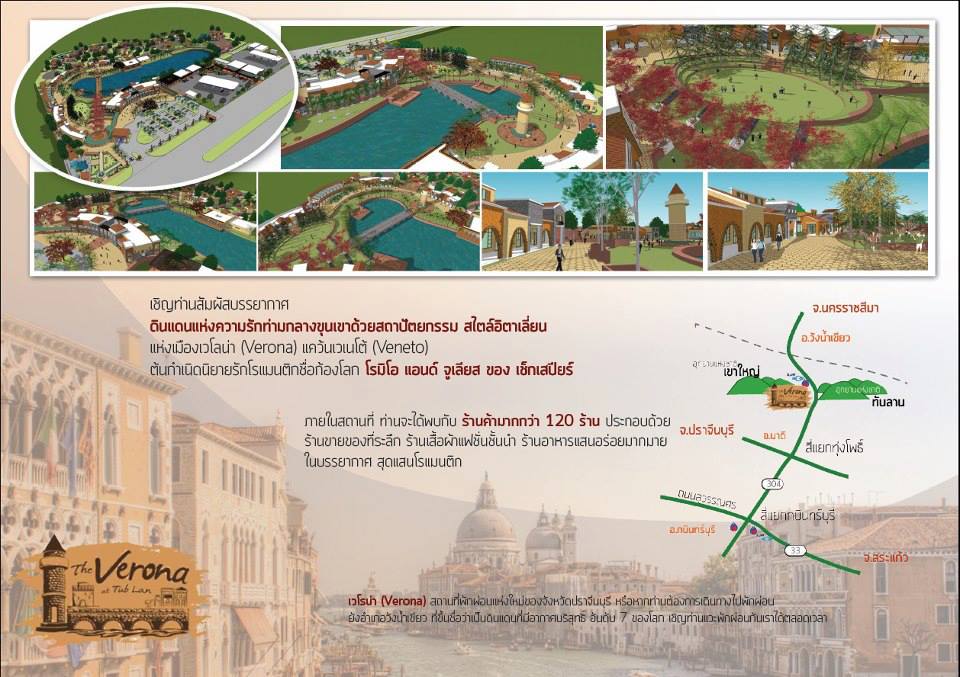 “เดอะเวโรน่า @ ทับลาน” ประตูสู่วังน้ำเขียว แหล่งมรดกโลก ที่สุดของประสบการณ์การท่องเที่ยว ในบรรยากาศแบบเมืองเวโรน่า ดินแดนแห่งความรัก อันสุดแสนโรแมนติก โรมิโอ&จูเลียต ท่ามกลางบรรยากาศขุนเขา ที่ขึ้นชื่อว่ามีอากาศที่บริสุทธิ์ อันดับ 7 ของโลก แห่งแรกในประเทศไทยที่คุณไม่ควรพลาด