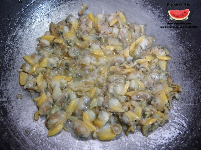 -นำเนื้อหอยลายลงคลุกคเล้า ชิมรส