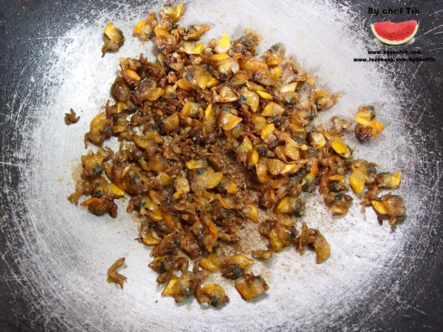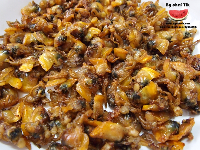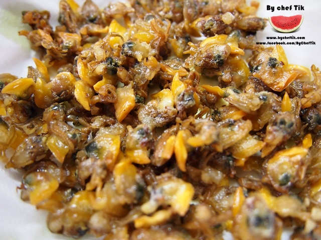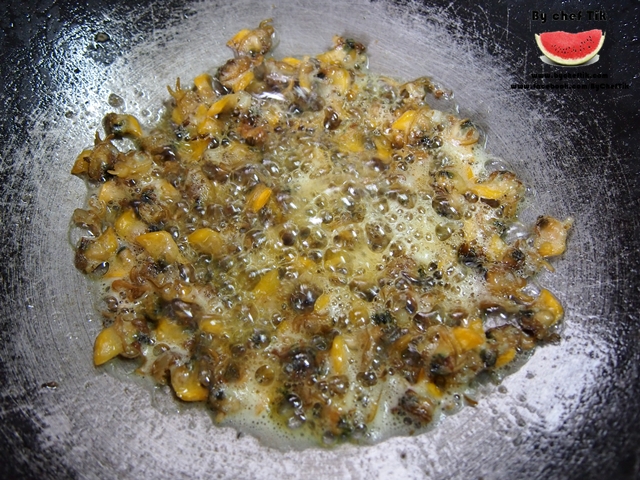 -ตั้งกระทะใส่น้ำมันพืชให้เดือดให้ปานกลาง ในหอยลงหอย ให้กรอบและสุก