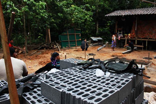 ภาพแรกเป็นภาพขณะหน่วยได้ช่วยชาวบ้านในการก่อสร้างบ้านให้ชาวบ้านในหมู่บ้าน