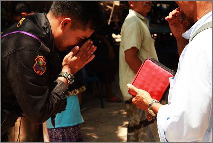 ละหมาด ผู้นำในการละหมาดคือ บาบอ ( ผู้ที่ชาวบ้านให้ความเคารพ ) เป็นผู้ที่มีบุญคุณกับหน่วยผมมาก