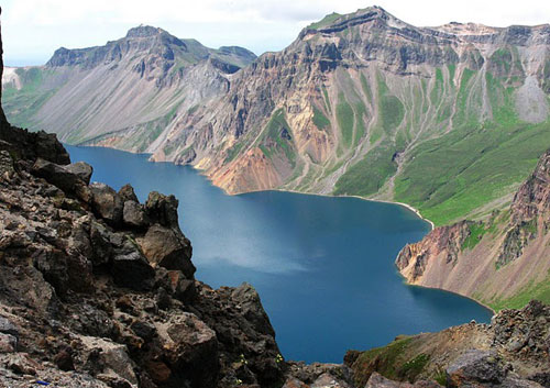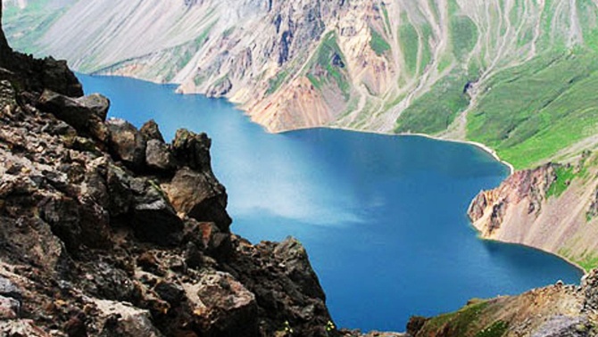ส่วนวัตถุหิน Lava ที่ไหล หลั่งจากภูเขาไฟก็กองทับถบที่รอบภูเขาไฟ กลายเป็นยอดเขา 16 ลูกที่เรียงรายอยู่บริเวณใกล้เคียง ยอดเขาเหล่านี้ มี 7 ลูก อยู่ในเขตเกาหลีเหนือ 9 ลูกตั้งอยู่ในเขตจีน ยอดเขาทั้ง 9 ลูก ในแดนจีนต่างมีเอกลักษณ์ของตนเอง เป็นทรรศนียภาพที่ แปลกตาน่าอัศจรรย์