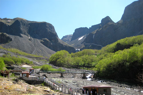 ถือว่าเป็นทิวทัศน์ยิ่งใหญ่มาก น้ำตกส่งเสียงดังสนั่นไปไกลถึง 200 เมตร น้ำของน้ำตกไหลไปสู่แม่น้ำซงฮัวเจียง โดยเป็นต้นน้ำแห่งหนึ่ง ของแม่น้ำซงฮัวเจียง ณ สถานที่ห่างจากน้ำตกไม่ไกลนักยังมี น้ำพุร้อนฉางไป๋ ซึ่งเป็นกลุ่มน้ำพุร้อนที่กระจายอยู่ในเนื้อที่ 1,000 ตารางเมตร มีตาน้ำ 13 จุดพ่นน้ำพุออกมา