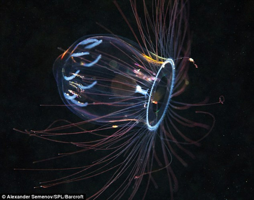 อย่าง เช่นสัตว์ใต้น้ำเรืองแสงเหล่านี้ มีลักษณะคล้ายวุ้นเปล่งประกายออกมาเป็นสีต่างๆ ภายใต้ท้องทะเลลึกแห่งทะเลขาว ทางรัสเซียตอนเหนือ โดยอเล็กซานเดอร์ เซมินอฟ นักชีววิทยาวัย 25 ปี จากมหาวิทยาลัยมอสโคว สเตต ลงไปบันทึกภาพสิ่งมีชีวิตมหัศจรรย์เหล่านี้ แม้ว่าสภาพแวดล้อมจะเต็มไปด้วยอุปสรรคก็ตาม