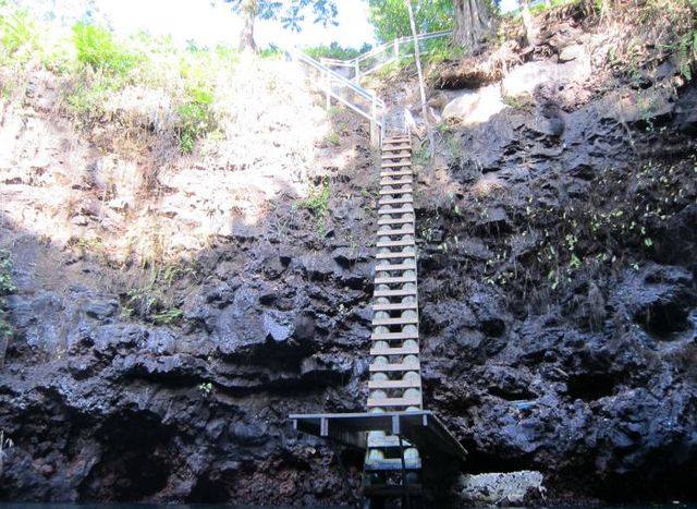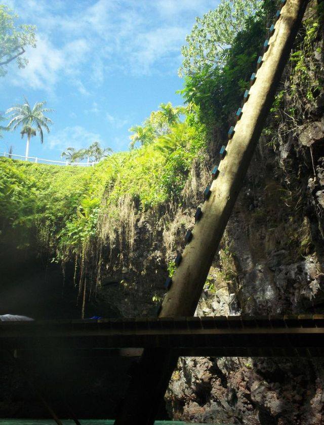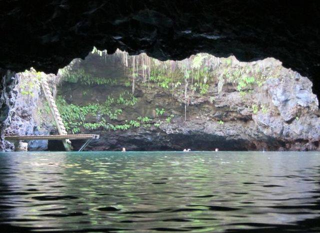 To Sua Ocean Trench is located in Lotofaga village .To sua literally means a Giant Swimming Hole. 30 meters deep and is accessible via a long ladder to the pool Overlooking the ocean is a beach called Fagaoneone meaning white sand whereas opposite is a lava field with blow hole, tide pools and walking paths along the rocks near the ocean’s edge.