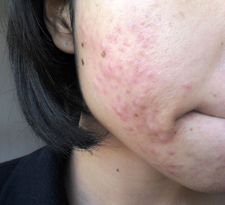 ****ระหว่างที่รอยาแก้แพ้ โดสหน้าที่เราสั่งหลังจากนั้นก็มาถึงห่างกันประมาณซัก2วันกับครีมตัวแรก เราเลยใช้ทาหน้าคืนนั้นเลยเพราะเค้าบอกว่าช่วยรักษารอยดำจากสิว สิวอักเสบ และช่วยให้หน้าขาวใส*** ตอนแรกใช้ครีมแล้วแพ้ พอได้โดสมาก็ว่าจะช่วยบรรเทา ยิ่งเห่อทั้งหน้าตอนนั้นตกใจมาก,,,หลังจากนั้นเราพักหน้าเลย ไม่ทาอะไรแล้วล้างหน้าทาสมูทอีอย่างเดียว ยาแก้แพ้ที่เค้าส่งมาให้รอ**** สังเกตุว่ารอยเริ่มจางนิดๆแต่ก็ยังมีสิวอักเสบขึ้นมาตลอด(รูปล่าง)