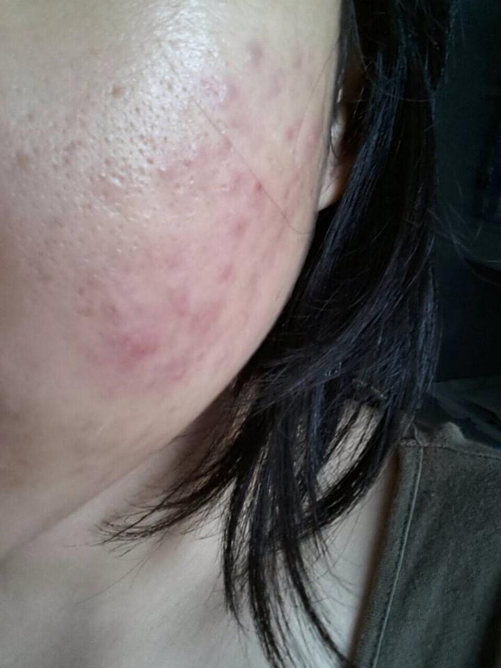 วันที่10-08-56 โทรคุยกับทางเจ้าของแบรนด์และส่งรูปไปให้ดู เค้าบอกว่าจะส่งยาแก้แพ้มาให้ฟรี(ตอนแรกก็แอบคิดว่าเค้าก็ใส่ใจดี) ดูจากรูปรอยแดงใหญ่ๆตรงแก้มนั้นคือรอยสิวเก่า แต่รอยเล็กๆแถวๆกลางแก้มลงมา ตรงมุมปากคือรอยใหม่ จะสังเกตุว่ายังไม่มากจนหน้าตกใจ