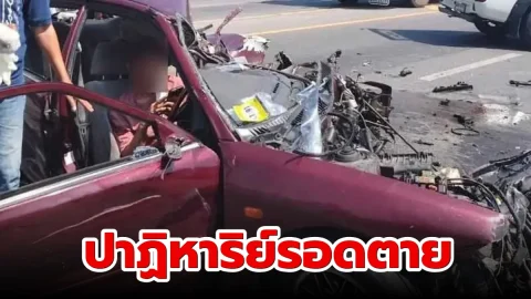ปาฏิหาริย์รอดตายท่ามกลางซากรถ..คอหวยส่องทะเบียน