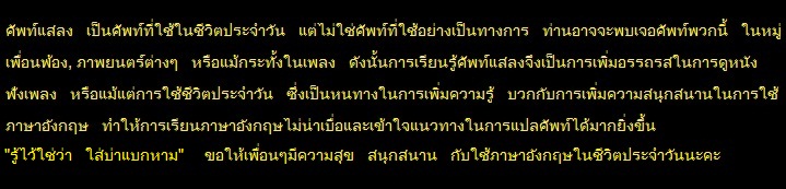 ขอย้ำอีกทีนะคะ ว่าศัพท์ทั้งหมดที่เจ๊นำเสนอมานี้ เป็นแค่ส่วนหนึ่งนะคะและ ไม่แนะนำให้ใช้พร่ำเพรื่อนะคะ รู้ไว้แค่ประดับความรู้ค่ะ