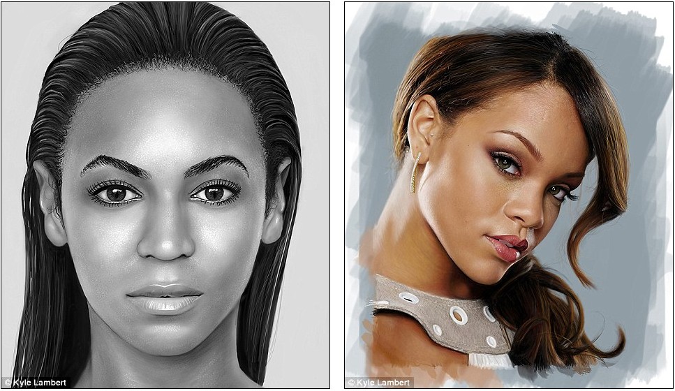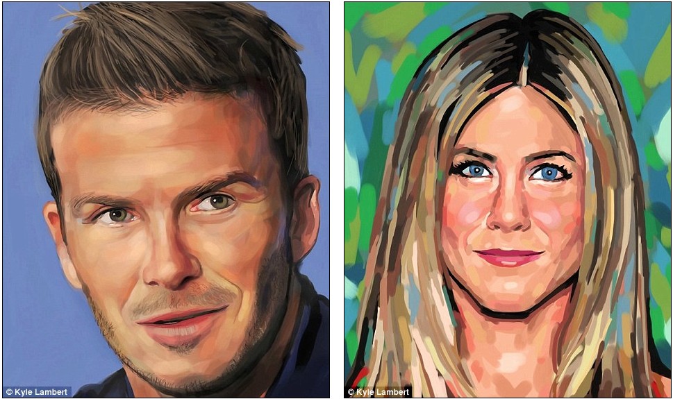 ผลงานวาดรูปจากไอแพดของไคล์ นอกจากจะมีรูปของมอร์แกนแล้ว ยังมีรูปคนดังหลายคน เช่น บียอนเซ่ บารัคโอบามา และอีกหลายคน