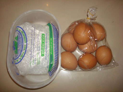 เครื่องปรุงก็มี : ไข่ไก่ วุ้นเส้น และผักชี