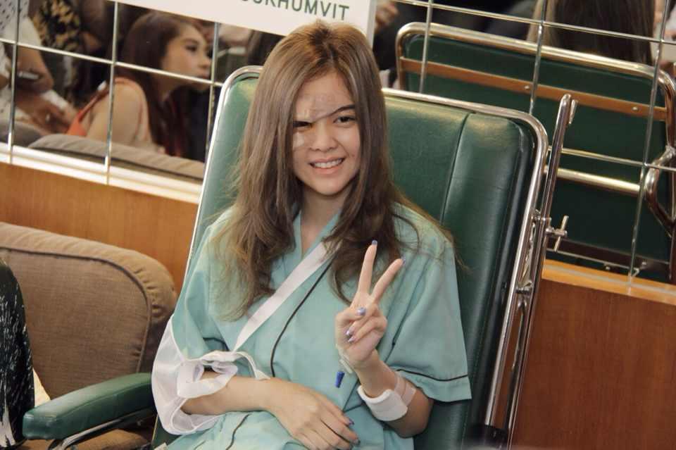 ด้าน น.พ.ชาติชายรัตนามหัทธนะ ศัลยแพทย์พลาสติกตกแต่ง ได้เปิดเผยอาการว่า ตอนแรกที่รับตัวมาแผลที่ใบหน้าของน้องมีมาก น้องรู้สึกตัวดีอยู่เหมือนไม่มีอะไร ซึ่งทีมแพทย์ต้องทำการตรวจละเอียดอีกครั้งนึงเนื่องจากน้องมีการหมดสติในที่เกิดเหตุ ทำการสแกนสมองแล้วไม่มีอะไรน่าเป็นห่วง โดยรวมถือว่าบาดเจ็บมีบาดแผลค่อนข้างเยอะ แต่น่าเป็นห่วงคือไหปลาร้าข้างขวาหัก กระดูกซี่โครงซี่ที่ 2 หักและไปทิ่มปอดทำให้ปอดรั่ว อยากจะฝากคนขับรถทุกคนให้คาดเข็มขัดนิรภัยด้วย ประมาณ 4 สัปดาห์ แต่ทางการกระดูกซี่โครงน่าจะหลายเดือนอยู่เหมือนกัน ตอนนี้ไม่มีอะไรน่าเป็นห่วงแล้วครับ