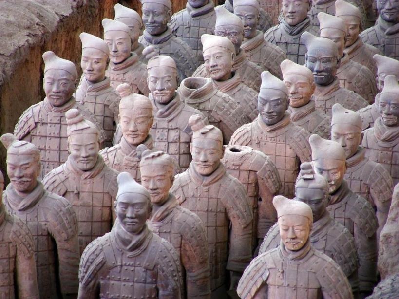 ปัจจุบันรัฐบาลจีนขุดค้นพบวัตถุโบราณที่เป็นกองทัพทหารดินเผา สรรพาวุธ รถม้าและม้าศึก จำนวนทั้งสิ้นกว่า 7,400 ชิ้น ภายในบริเวณพื้นที่หลุมสุสานกว่า 25,000 ตร.ม หุ่นทหารดินเผาภายในสุสานมีขนาดรูปร่างที่แตกต่างกัน มีความสูงประมาณ 1.8 เมตร ลักษณะหน้าตา กริยาท่าทาง เครื่องแต่งกายไม่เหมือนกันแม้แต่ตัวเดียว รัฐบาลจีนที่รับผิดชอบในการขุดค้นสุสานประวัติศาสตร์นี้ เชื่อกันว่าหลุมกองทัพดินเผาของฉินชื่อหวง มีด้วยกันทั้งหมด 8 หลุม แต่ในปัจจุบันมีการขุดค้นเพียงแค่ 3 หลุมเท่านั้น เพราะรัฐบาลจีนยังไม่ต้องการทำการขุดค้นอย่างต่อเนื่อง เพราะเกรงว่าสีของหุ่นทหารดินเผาที่ขุดพบนั้นจะหายไป ในอดีตเริ่มแรกของการขุดพบกองทัพทหารดินเผาจากสุสานใต้ดินนั้น หุ่นทหารเหล่านี้มีแก้มเป็นสีชมพู สวมเครื่องแต่งกายที่มีสีสันสดใสที่ทาสีเอาไว้อย่างสวยงาม โดยส่วนใหญ่จะสวมเสื้อสีชมพู กางเกงสีเขียวและฟ้า แต่ทว่าเมื่อหุ่นทหารดินเผาถูกอากาศและแสงแดด เกิดปฏิกิริยาทางเคมีทำให้สีของหุ่นทหารดินเผาลอกหายไป เปลี่ยนเป็นสีดำอย่างน่าเสียดาย