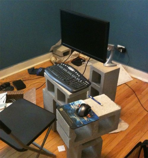 หรือหากบ้านใครมีของจำพวกอิฐหรือหินบล็อคอยู่เยอะ ก็สามารถจับมาเรียงเป็นแท่นเพื่อเซ็ตคอมพิวเตอร์ก็ได้ แถมสวยงามดีอีกด้วย