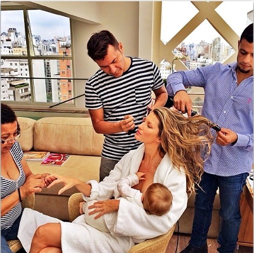 แม้ว่าคุณกำลังทำงานระหว่างถ่ายแบบ คุณก็สามารถเพริดแพร้วในท่าให้นมลูกระหว่างทำเล็บ แต่งหน้าและจัดทรงผมได้แบบมนุษย์คนอื่นอาจจะต้องทึ่ง