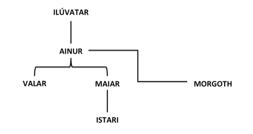 แผนผังเทพ(Ainur)แห่งมิดเดิลเอิร์ธซึ่งมีมหาเทพอิลูวาทาร์เป็นเทพสูงสุด