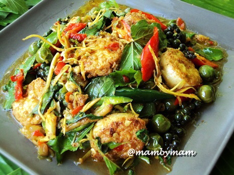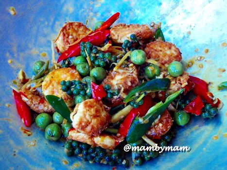 เต้าหู้หลอดทอดพอเหลือง พริกไทยอ่อน กระชายเส้น มะเขือพวง พริกขี้