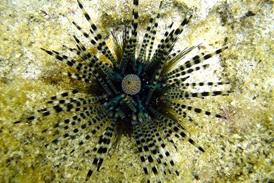 อาหารของเม่นทะเลคือ สาหร่ายที่เกาะติดอยู่ตามก้อนหินหรือแนวปะการัง
