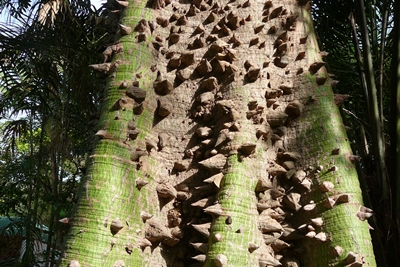 ผลอ่อนสีเขียวลักษณะยาวๆคล้ายผลแตงกวา แต่มีขนาดใหญ่กว่า เมื่อแก่จะเปลี่ยนเป็นสีน้ำตาล เนื้อข้างในเป็นปุยและมีเมล็ดสีดำจำนวนมาก ลำต้นและกิ่งก้านสีเขียว มีหนามสั้นๆที่โคนต้น กิ่งทอดขนานกับพื้น ทิ้งใบในฤดูแล้ง ดอกสีขาวนวล ผลทรงรูปกระสวย ออกผลช่วงเดือน กุมภาพันธ์-เมษายน
