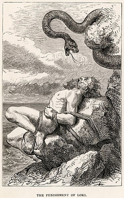 จอมเทพโอดินได้ลงโทษความผิดร้ายแรงของโลคิ ด้วยการนำเขาไปพันธนาการไว้กับก้อนศิลาและให้งูพิษที่อยู่เหนือศีรษะค่อยหยดพิษใส่ใบหน้าของเขาอยู่ตลอดเวลา ทำให้โลคิต้องดิ้นทุรนทุรายด้วยความทรมาน