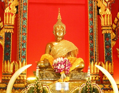 พระเสริม(องค์ด้านหลังสุด) วัดปทุมวนาราม กรุงเทพมหานคร อัญเชิญมาจากกรุงเวียงจันทน์