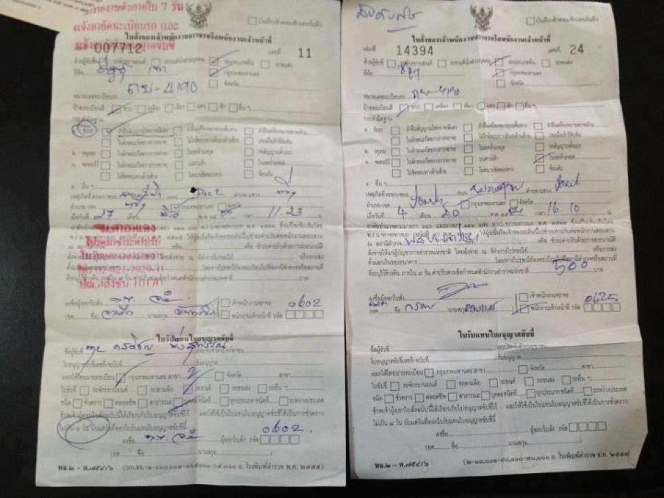 ใบซ้ายคือใบสั่งจริงเข้าหลวงแต่ใบขวาคือพวกตำรวจทำขึ้นมาเองโดยรู้กันใน สน.