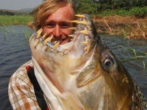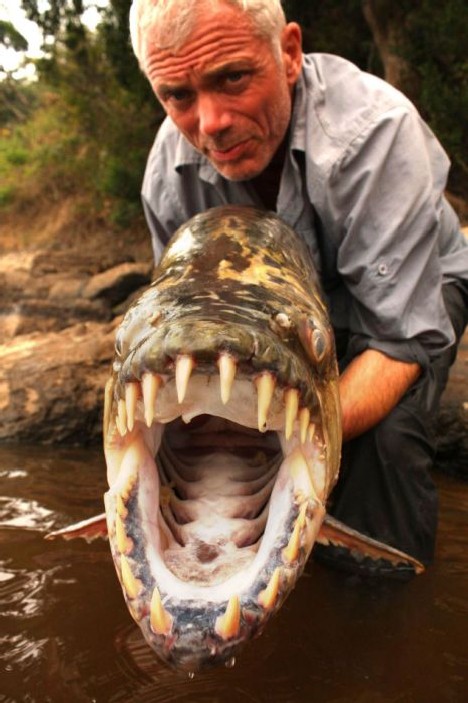 ปลา Tiger Fish เป็นปลาน้ำจืดกลุ่ม Characin(กลุ่มเดียวกับปิรันย่า) ที่มีขนาดใหญ่ มักอาศัยใน แม่น้ำ Lualaba และทะเลสาป Tanganyika ประเทศคองโก ขนาดใหญ่สุด มี น้ำหนักถึง 80 ปอนด์ ที่เรียกว่า “ปลาเสือ” ก็เพราะ ก็อันเนื่องมาจากข้อมูลพฤติกรรม ของมันที่เป็นนักล่ามาแต่กำเนิด บวกกับเขี้ยวของมันและด้วยรูปร่างของมันคล้าย ตอร์ปิโด