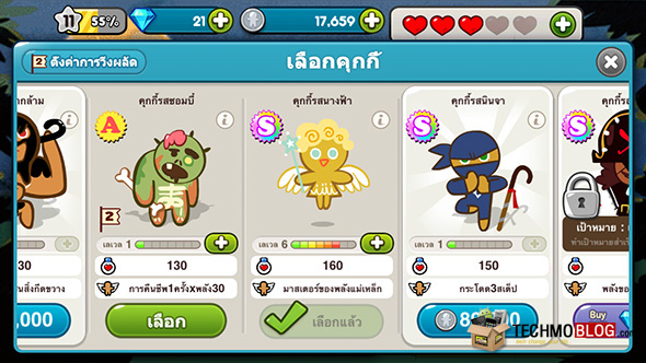 คุกกี้นั้นเรียกได้ว่าเป็นตัวละครหลักในเกม โดยคุกกี้นั้นก็มีให้เลือกใช้งานมากมายหลายแบบ ซึ่งแต่ละตัวก็จะมีความสามารถแตกต่างกันออกไป และการที่ผู้เล่นได้ทราบว่า คุกกี้แต่ละตัวมีความสามารถพิเศษอะไรบ้าง ก็จะช่วยให้คุณสามารถเลือกคุกกี้เข้ามาเล่นได้ตามความเหมาะสม ยกตัวอย่างเช่น คุกกี้ช็อคโกแลตครีมเนย ที่มีความสามารถพิเศษในการเพิ่ม Coin ที่ได้รับสูงสุด 25% เหมาะสำหรับผู้ที่ต้องการเก็บเงินไว้อัพเกรด เป็นต้น เราลองมาดูกันครับว่า คุกกี้แต่ละตัวนั้นจะมีความสามารถพิเศษอะไรบ้าง