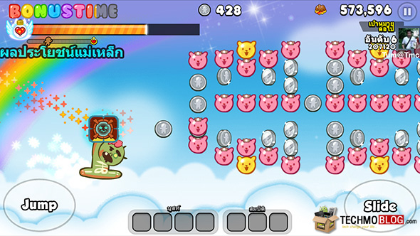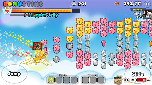 จะเห็นได้ว่า ระหว่างการวิ่งนั้น นอกเหนือจาก Jelly ปกติที่เราจะพบได้แล้ว ยังมีไอเท็มชนิดอื่นๆ รวมถึง Bear Jelly หรือเยลลี่รูปหมี ที่ให้คะแนนเราด้วยเช่นเดียวกัน เราลองมาดูกันว่า ไอเท็มแต่ละชนิดที่เราเก็บนั้น จะให้คะแนน และ Coin เท่าไหร่กันบ้าง