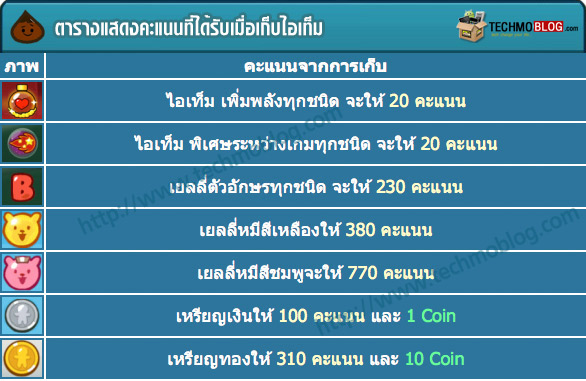 ไอเท็มต่างๆ ในเกม ให้คะแนนเท่าไหร่กันบ้าง ?