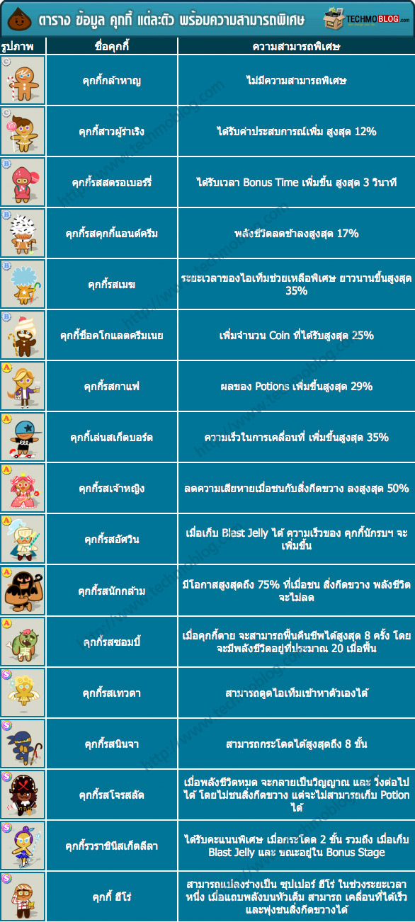 ข้อมูล คุกกี้ แต่ละตัว พร้อมความสามารถพิเศษ