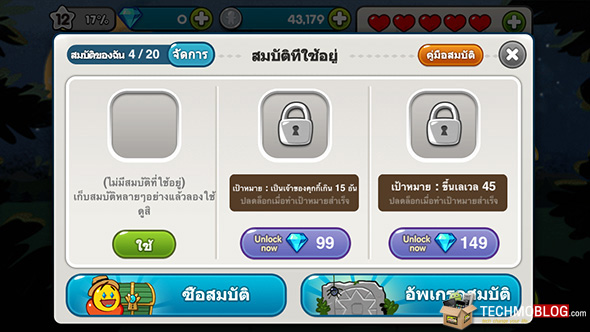 ส่วนไอเท็มสมบัตินั้น ถ้ามีก็จะช่วยให้การเก็บเงินของคุณเร็วขึ้นมาอีกนิด หรืออาจจะช่วยให้เก็บเงินในแต่ละครั้งได้มากขึ้น ตามความสามารถพิเศษของ สมบัติแบบต่างๆ ที่คุณใช้งาน