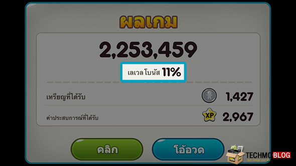 เลเวลมากขึ้น โบนัสคะแนนที่ได้ จะมากขึ้นไปด้วย