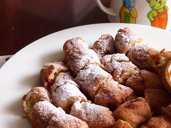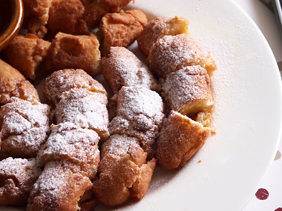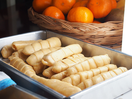 ที่เห็นอยู่ในถาด เป็นการทำรอบที่สอง ที่บอกว่านวดแป้งจนได้เนียนนุ่ม ห่อง่าย ทอดออกมาแล้วเราว่าเนื้อแป้งกระด้างกว่าแบบที่นวดแค่พอดี ๆ