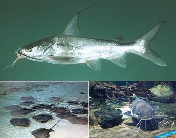 2.กลุ่มปลาดุกทะเล และ ปลากดทะเล ปลาดุกทะเลเป็นปลาไม่มีเกล็ด ลำตัวปกคลุมด้วยเมือกลื่น รูปร่างเรียวยาว ด้านข้างแบน ส่วนหัวแบนลง มีหนวด 4 คู่ อยู่ที่บริเวณรูจมูก 1 คู่ ริมฝีปาก 1 คู่ และใต้คาง 2 คู่ ครีบหลังอันที่สอง ครีบก้น และครีบหางติดต่อกัน ครีบหลังและครีบอกมีก้านครีบแข็ง ซึ่งมีลักษณะเป็นหยักคล้ายฟัน เลื่อยขนาดใหญ่แข็งแรง ส่วนปลากดทะเลเป็นปลาไม่มีเกล็ด ลำตัว มีเมือกลื่น หัวแบนปกคลุมด้วยกระดูกเป็นสันและเป็นตุ่มเม็ดหยาบๆ ครีบหางรูปส้อม ครีบหลังอันแรกและครีบอกมีก้านครีบแข็งซึ่งมีลักษณะเป็นหยักคมคล้ายฟันเลื่อยขนาดใหญ่ มีต่อมพิษอยู่ที่ผิวของเยื่อที่คลุมก้านครีบ และที่ตอนกลางของกระดูกก้านครีบ