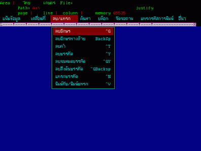 - ในเอกสารสามารถเลือกชุดฟอนต์ได้หลายชุดพร้อมกันจากทั้งหมดสี่ชุด แต่ละชุดมีสองแบบได้แก่ ตัวตรง และตัวเอน (ส่วนตัวหนาและขีดเส้นใต้จะกระทำขณะรัน) โดยเฉพาะชุดที่สี่ เป็นชุดสำหรับพิมพ์ภาษาต่างประเทศเช่น เยอรมัน ฝรั่งเศส ลักษณะเหมือนกับชุดที่หนึ่งแต่ต่างกันที่สัญลักษณ์ สามารถแก้ไขฟอนต์ได้ด้วยโปรแกรม CUFONT.EXE