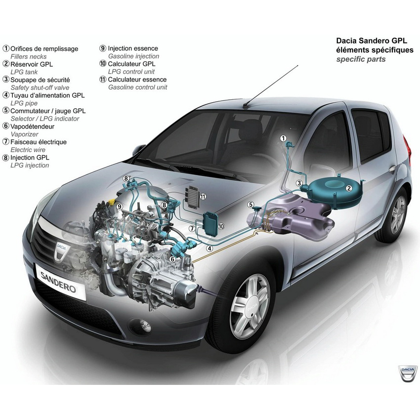 รถยนต์ใช้แก๊สระบบเชื้อเพลิงร่วม DDF (Dual Fuel System) ซึ่งเป็นระบบที่ใช้แก๊สร่วมกับน้ำมันดีเชล หรือใช้น้ำมันดีเชลอย่างเดียวอัตราส่วนแก๊สต่อน้ำมันดีเชลจะขึ้นกับเครื่องยนต์นั้นๆ