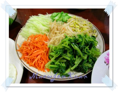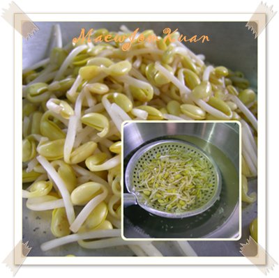 ถั่วงอกหัวโต -- อันนี้ของโปรดเลยค่ะ เอามาลวกน้ำพอสุกแล้วเอามาคลุกกะน้ำมันงาและเกลือนิดหน่อยค่ะ