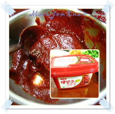 สำ หรับซ้อส ก็ไปซื้อเจ้าโกชูจังตามซูเปอร์มาเก็ต ฝนซื้อมาจากซูเปอร์ใน Korean Town ค่ะ ราคา 190 บาท แต่วันก่อนไปเดินซื้อผักในคาร์ฟูก็เห็นมีขายนะคะ แต่รู้สึกจะแพงกว่าที่ฝนซื้อนะ ตักโกชูจังออกมาตามที่จะใช้ แล้วปรุงด้วยน้ำมันงาและน้ำตาลค่ะ ชิมรสแล้วแต่ชอบเลยค่ะ