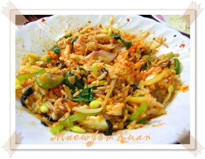 จริงๆ แล้ววิธีการทำไม่ได้ยากนะคะ เพียงแต่มันต้องเตรียมอะไรปลีกย่อยเยอะแยะแค่นั้นเอง เวลาส่วนใหญ่ก็หมดไปกะการเตรียมผักนี่แหละค่ะ กว่าจะเด็ดหางถั่วงอก กว่าจะหั่นซอยแครอทกะแตงกวา กว่าจะเอามาผัดมาต้ม แถมต้องทำแยกส่วนอีกต่างหากเพราะทำรวมๆ แล้วมันจะไม่สวย 555 สำหรับสูตรที่ฝนทำนี่ต้องขอบอกว่าเป็นสูตรตามใจฉันนะคะ อ่านเอาของหลายๆ ที่แล้วเอามาปรับตามความชอบและความสะดวกของตัวเองเป็นหลักค่ะ อาจจะแปลกๆ ก็อย่าถือสาแม่ครัวสมัครเล่นคนนี้นะคะ