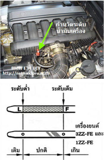 - เมื่อขีดของน้ำมันด้านหลังของเกจวัดแตกต่างจากด้านหน้า ให้อ่านค่าต่ำสุด