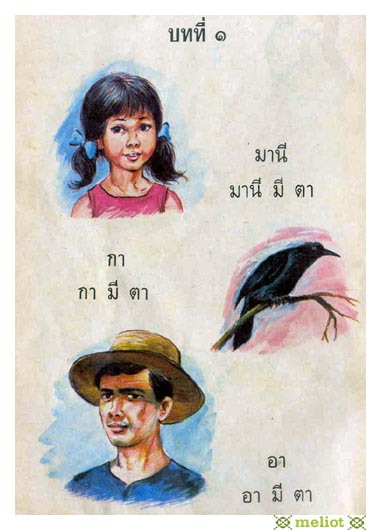 มานี รักเผ่าไทย : น้องสาวของมานะ เลี้ยงนกแก้วไว้ตัวหนึ่ง เมื่อขึ้นชั้นประถมศึกษาปีที่ 6 เพื่อนๆ เลือกตั้งให้เธอเป็นรองประธานนักเรียน
